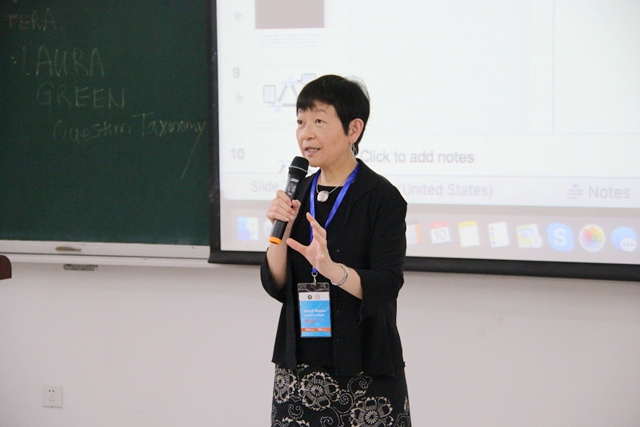 高琪老师首先为此次研修班做了课程导论,帮助参与教师厘清了教与学学术的相关概念,介绍了这一理论在国际与国内的发展和现状,并对整个研修班课程内容进行了预告与梳理。研修班共包括两个模块。模块一的主讲人为美国东北大学教发中心主任Kathy Takayama教授,她通过三个工作坊,带领参会教师学习如果开展教与学学术研究。第一讲中,Takayama教授从一个专业的教与学学术研究者的角度引导大家参与到教与学学术中,建构了理论框架并介绍了大致的操作方法及流程;第二讲的主题是将教学“问题化”,通过学科解码、建立跨学科学习社区讨论等具体实践的方法进行深度挖掘,使参会者对做SoTL研究有了更加深刻的理解,并尝试运用该方法到自己的教学过程中;第三讲则侧重于让老师们在自己做研究的基础上,对自己的学术研究成果进行公开,并在这一过程中进行学术发表和建立新的合作关系。通过一些科学合理的教学目标清单、考核量表以及伦理考察等方式,让参与者的研究更加科学化。